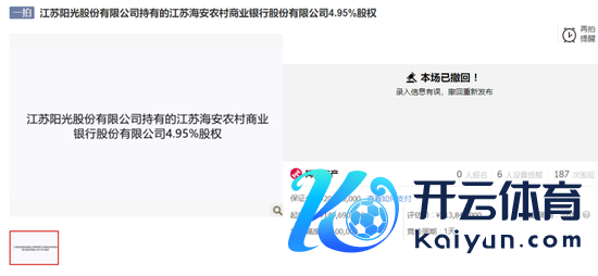 执法拍卖平台泄漏,江苏阳光股份有限公司合手有的江苏海安农村生意银行股份有限公司4.95%股权原定于2025年12月13日进行公开拍卖,不外这笔拍卖刚被挂出不久就被除去,情理是“录入信息有误赌钱赚钱官方登录,除去从头发布”。不外,适度当今这笔股权的拍卖仍未见从头发布。