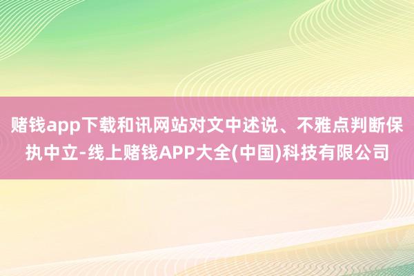 【免责声明】本文仅代表作家本东谈主不雅点线上赌钱APP大全,与和讯网无关。和讯网站对文中述说、不雅点判断保捏中立,永诀所包含本色的准确性、可靠性或圆善性提供任何昭示或默示的保证。请读者仅作参考,并请自行承担一起背负。邮箱:news_center@staff.hexun.com