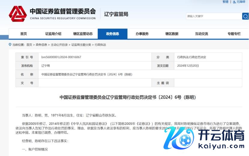 罚单裸露,依据2005年改良、2014年修正的《中华东谈主民共和国证券法》(以下简称2005年《证券法》)的关联规章,辽宁证监局对陈明摆布证券市集步履进行了立案拜访。于2024年11月27日举行了听证会,听取了陈明代理东谈主的述说和狡辩。当今,该案已拜访、办剖析散。