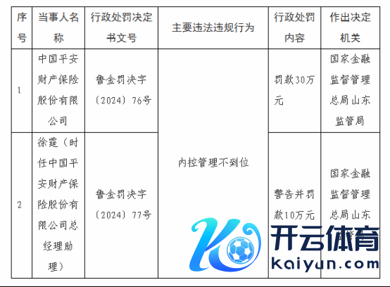 中国祥瑞财产保障股份有限公司因内控措置不到位,被罚金30万元。时任中国祥瑞财产保障股份有限公司总司理助理徐霆,因上述犯科违纪看成,受到警告并罚金10万元。