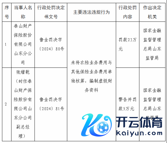 泰山财产保障股份有限公司山东分公司因未将农险业务用度与其他保障业务用度单独核算、编制造作财务贵寓,被罚金23万元。时任泰山财产保障股份有限公司山东分公司副总司理张增乾赌钱赚钱官方登录,因上述犯科违纪看成,受到警告并罚金5万元。