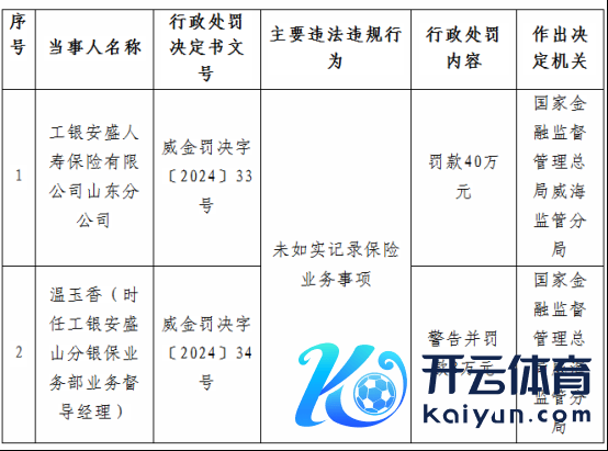 工银安盛东谈主寿保障有限公司山东分公司因未真确记载保障业务事项,被罚金40万元。时任工银安盛山分银保业务部业务督导司理温玉香,因上述犯科违纪看成,受到警告并罚金8万元。
