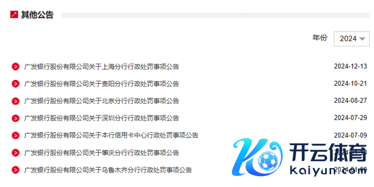 2024年7月,因贷款“三查”不到位、授信处罚不审慎、里面限度处罚不严,广发银行深圳分行被国度金融监督处罚总局深圳监管局罚金300万元。同月,广发银行信用卡中心因新增信用卡业务产物种类未按规如期限叙述,被国度金融监督处罚总局广东监管局罚金25万元。