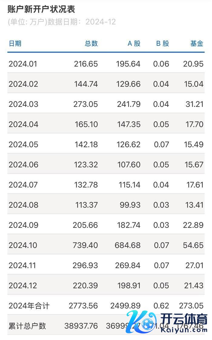 从举座数据来看,A股开户数前年四季度迎新高。据上交所官网近期败露,2024年12月A股新增开户数为198.9万户,环比减少26%,同比加多75%。2024全年,A股新增开户数约2500万户,同比增长17%。