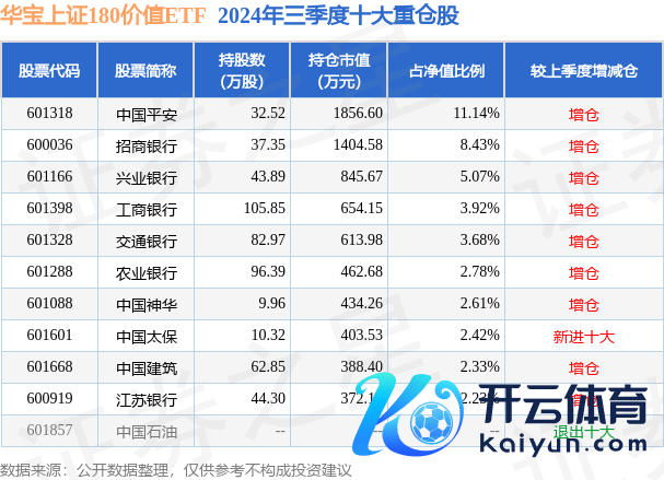 华宝上证180价值ETF为指数型-股票基金,凭据最新一期基金季报露出,该基金财富竖立:股票占净值比99.27%,无债券类财富,现款占净值比0.86%。基金十大重仓股如下: