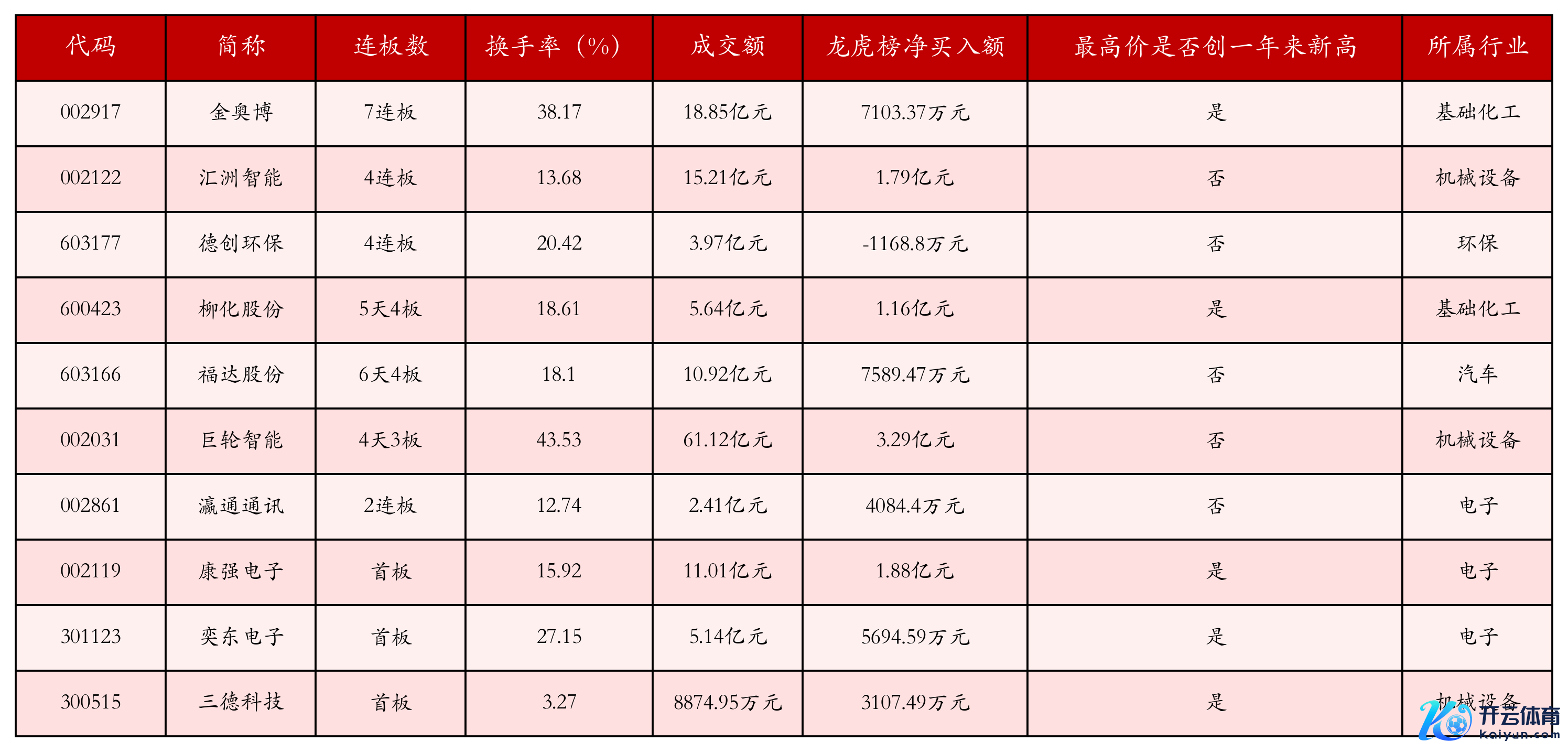 一、强势个股按捺1月17日收盘,上证综指飞腾0.18%,收于3241.82点,深证成指飞腾0.6%,收于10161.32点,创业板指飞腾0.78%,收于2067.27点。本日沪深两市A股盘算推算65只涨停,轮廓面前连板数以及当日龙虎榜数据,其中较为强势的前三只个股远离为:金奥博(002917)、汇洲智能(002122)与德创环保(603177)。本日强势个股前10位具体数据见下表: